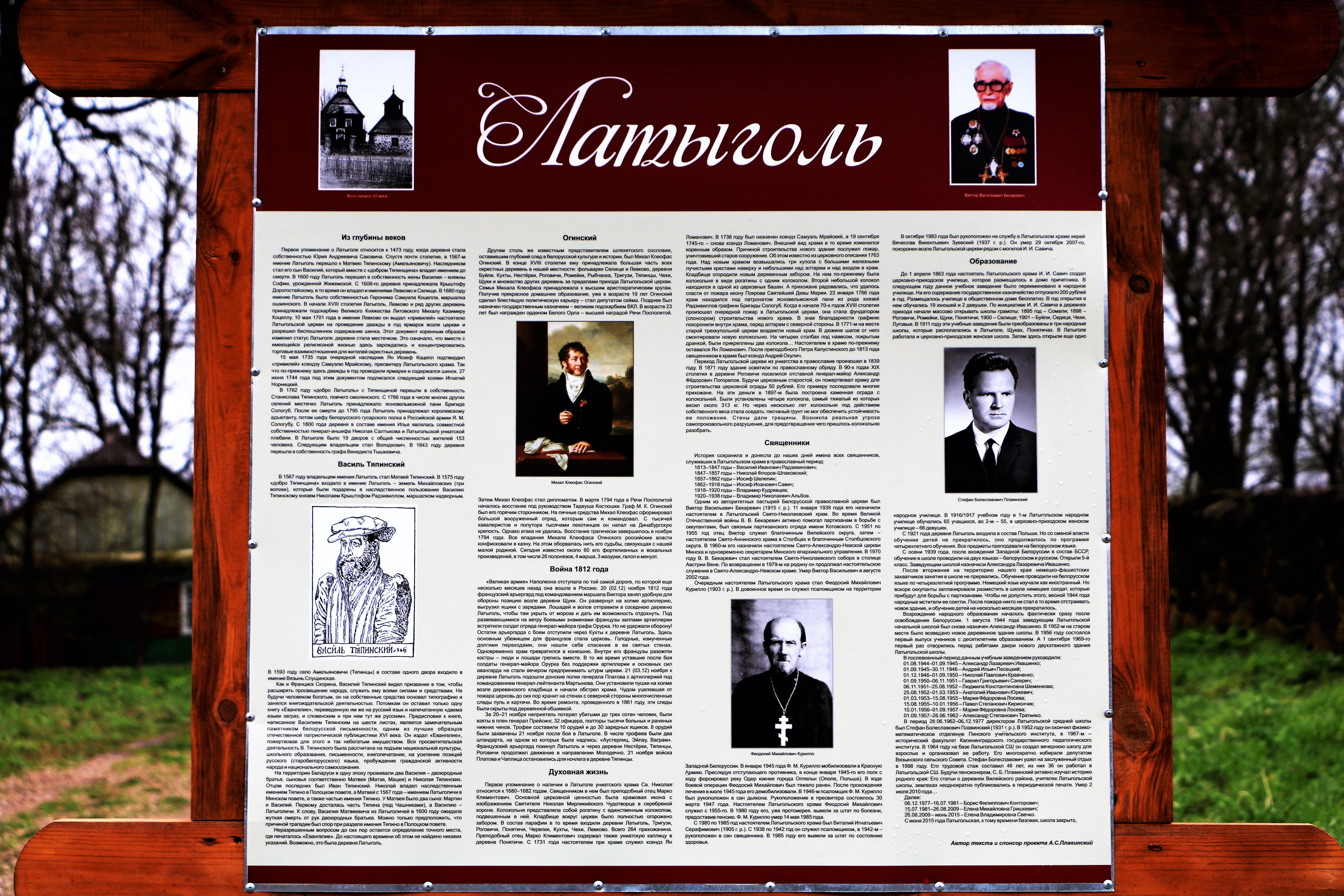 Рядом с церковью в деревне Латыголь установлен небольшой информационный стенд, повествующий об истории храма, прихода и деревни в целом. Если нажать на фото ниже, то оно откроется в таком размере, что Вы сможете спокойно прочитать всю информацию приведенную на данном стенде, если она Вам интересна (текст на стенде на русском языке).